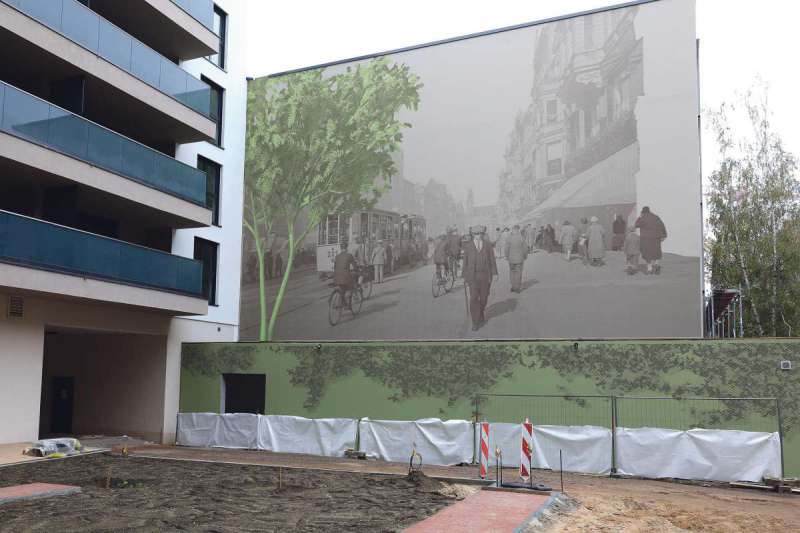 Eine historische Ansicht vom alten Breiten Weg findet man jetzt im Innenhof des neuen Domviertels. An der Seitenwand des Parkhauses wurde eine Ansicht aus der Gründerzeit angebracht.